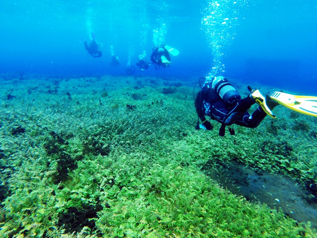 Immersione nel Lago di Capodacqua nei pressi di Capestrano nel Parco Nazionale del Gran Sasso e Monti della Laga. Le limpidissime acque del lago nascondono due mulini medievali ben conservati nelle limpidissime acque del lago che sono stati sommersi in seguito alla costruzione di una diga per l'irrigazione. By Diving Line ASD.