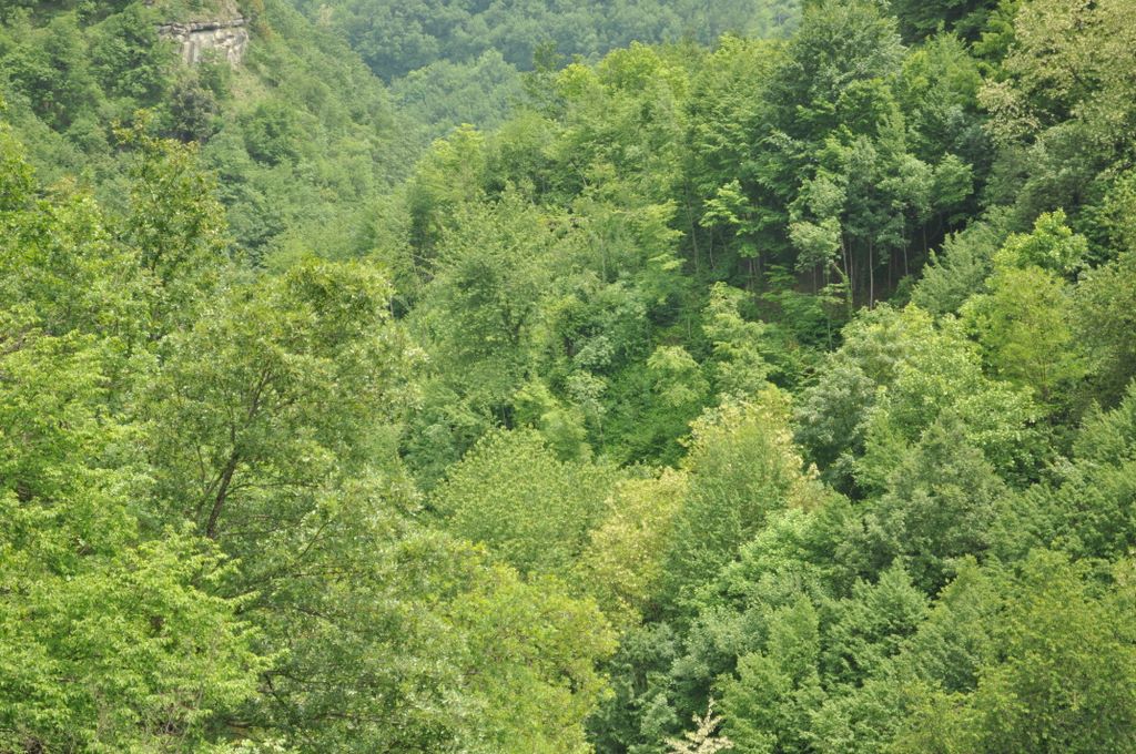 Beim allmählichen Verlassen des Waldes erreicht man das Herz des Valle delle Cento Cascate. Hier fließt der Fosso dell’Acero über große Sandsteinplatten und bildet eine fast durchgehende Abfolge von Stufen, Rutschen und kleinen Wasserfällen unterschiedlicher Größe – ein äußerst eindrucksvolles und landschaftlich reizvolles Szenario.