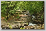 En sortant progressivement de la forêt, on entre dans le cœur de la Valle delle Cento Cascate. Ici, le Fosso dell’Acero s’écoule sur de grandes dalles de grès, formant une succession presque continue de ressauts, glissières et petites cascades de tailles variées, rendant l’itinéraire extrêmement panoramique et suggestif.