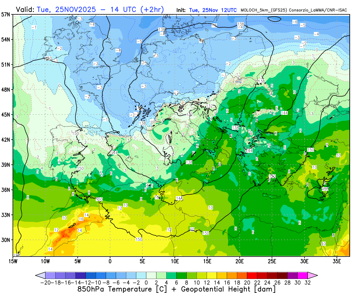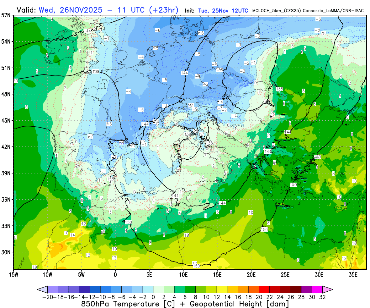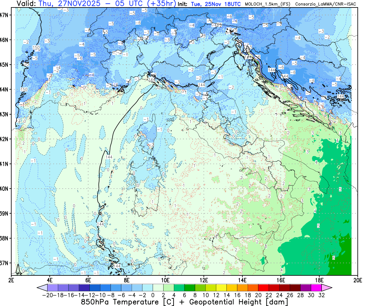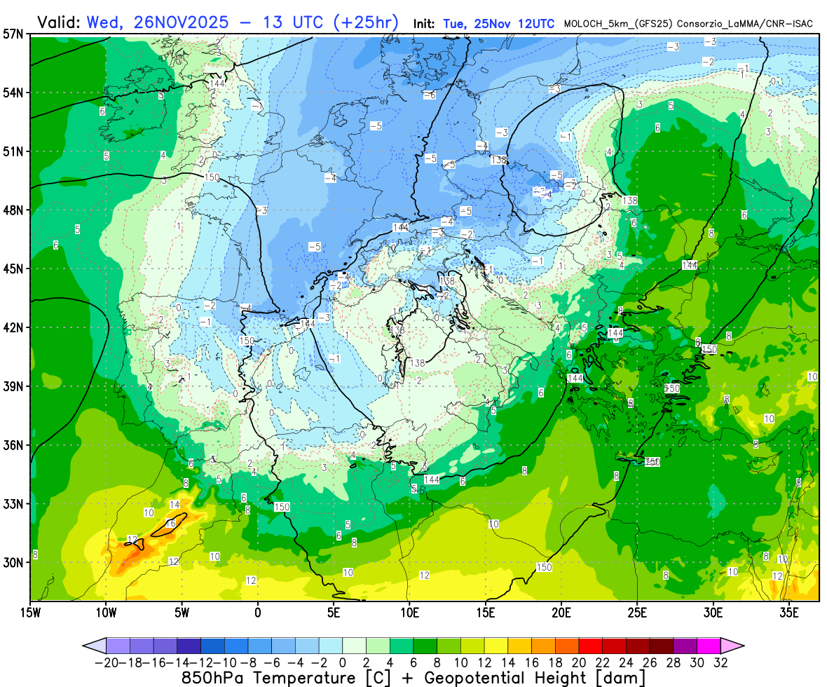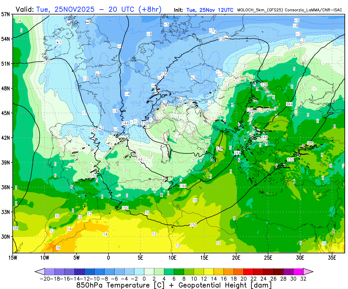 Gradi 8,6 C°, umidità relativa 85%, punto di rugiada 7.30 C° - Data: "Nov 25 2025 2:00 AM"