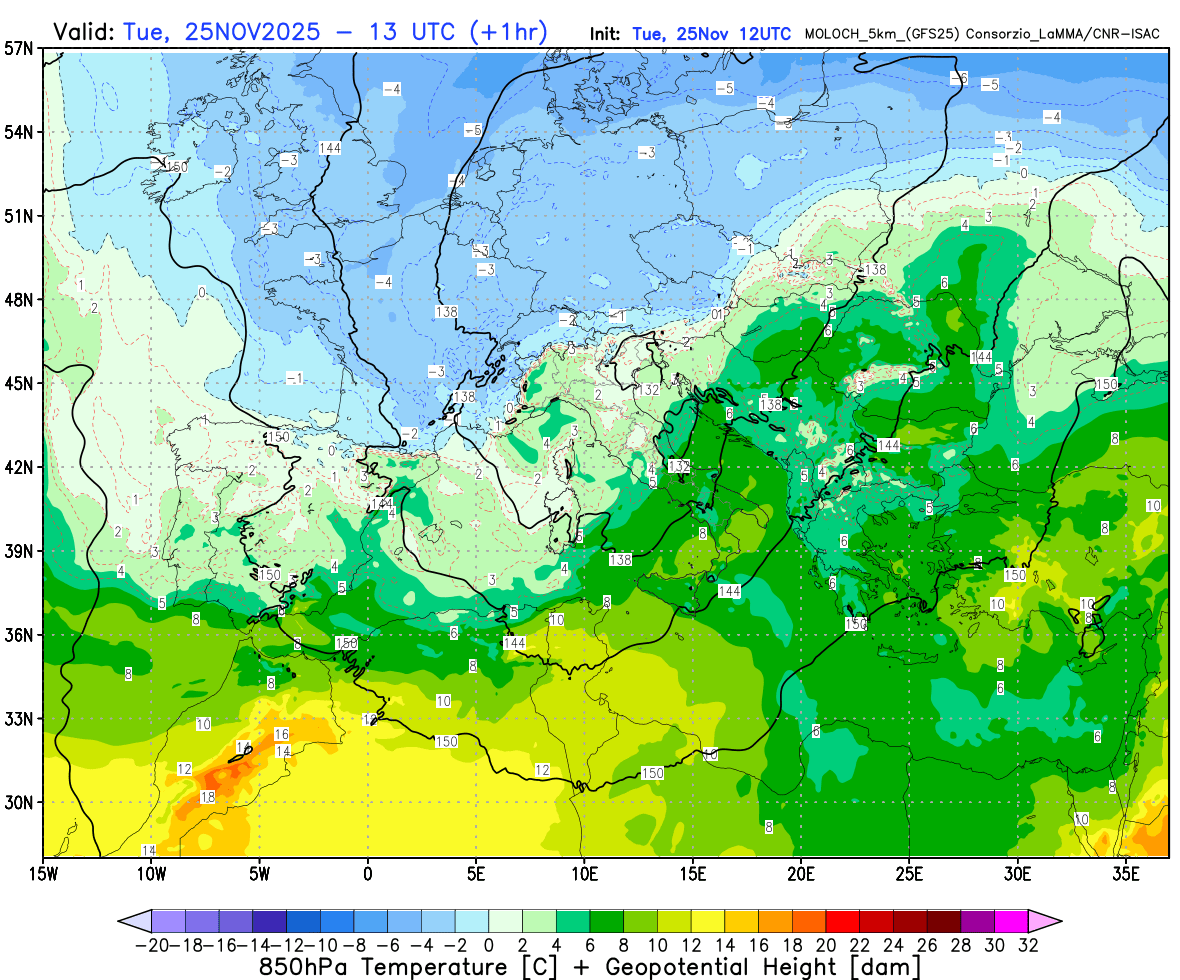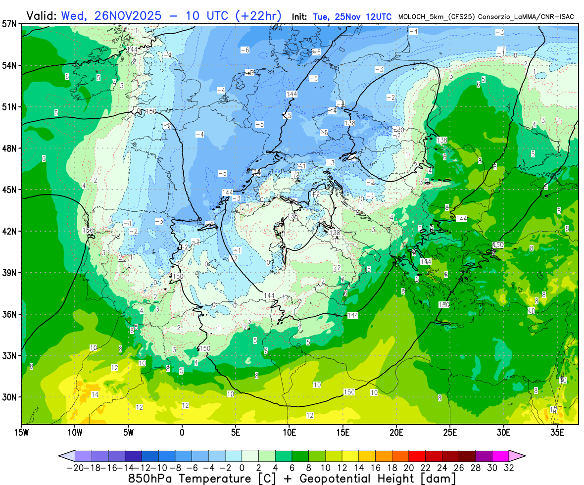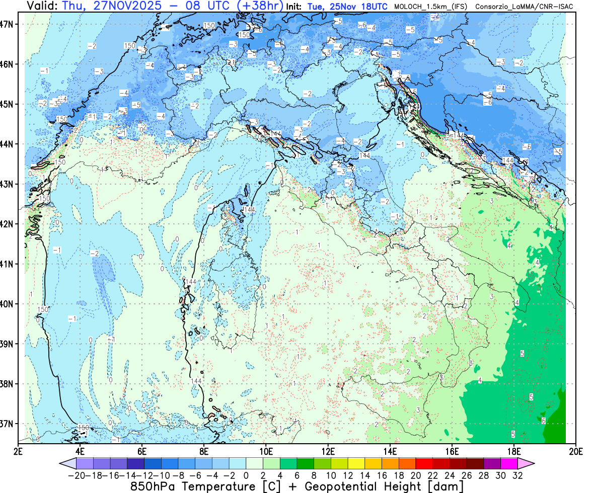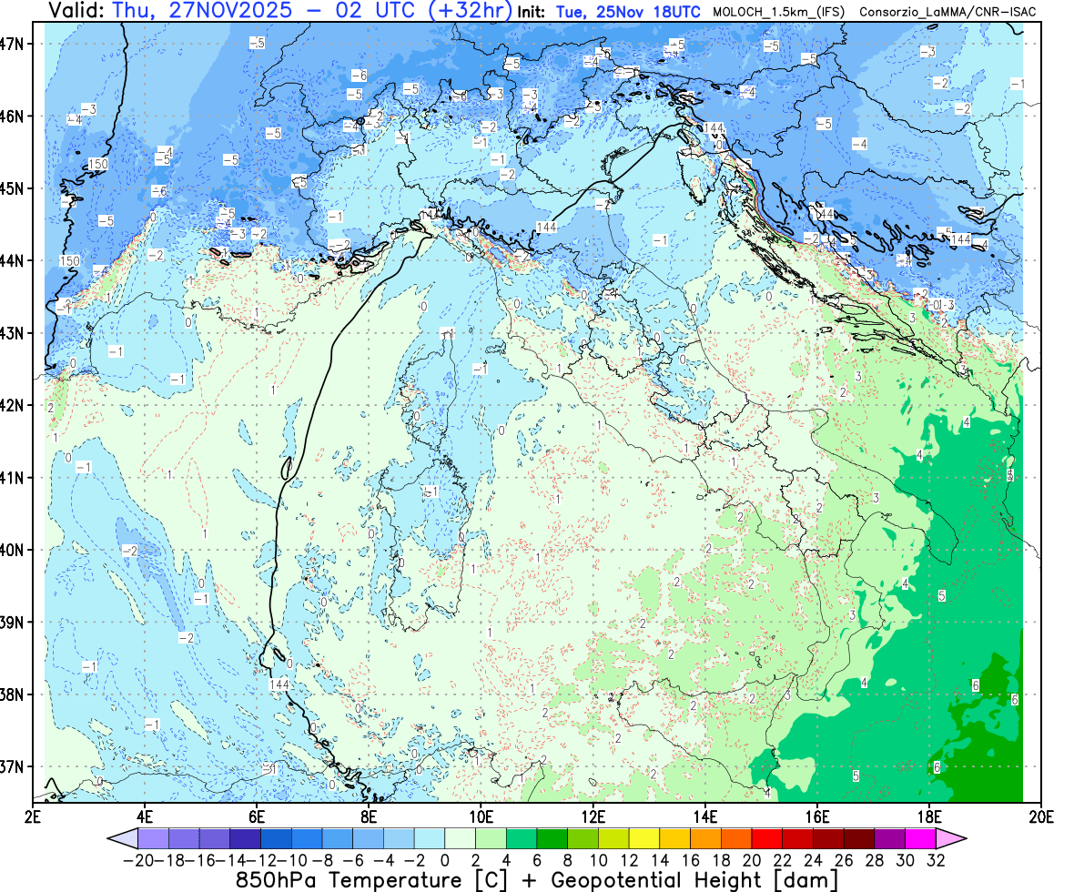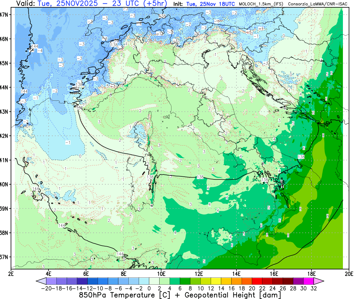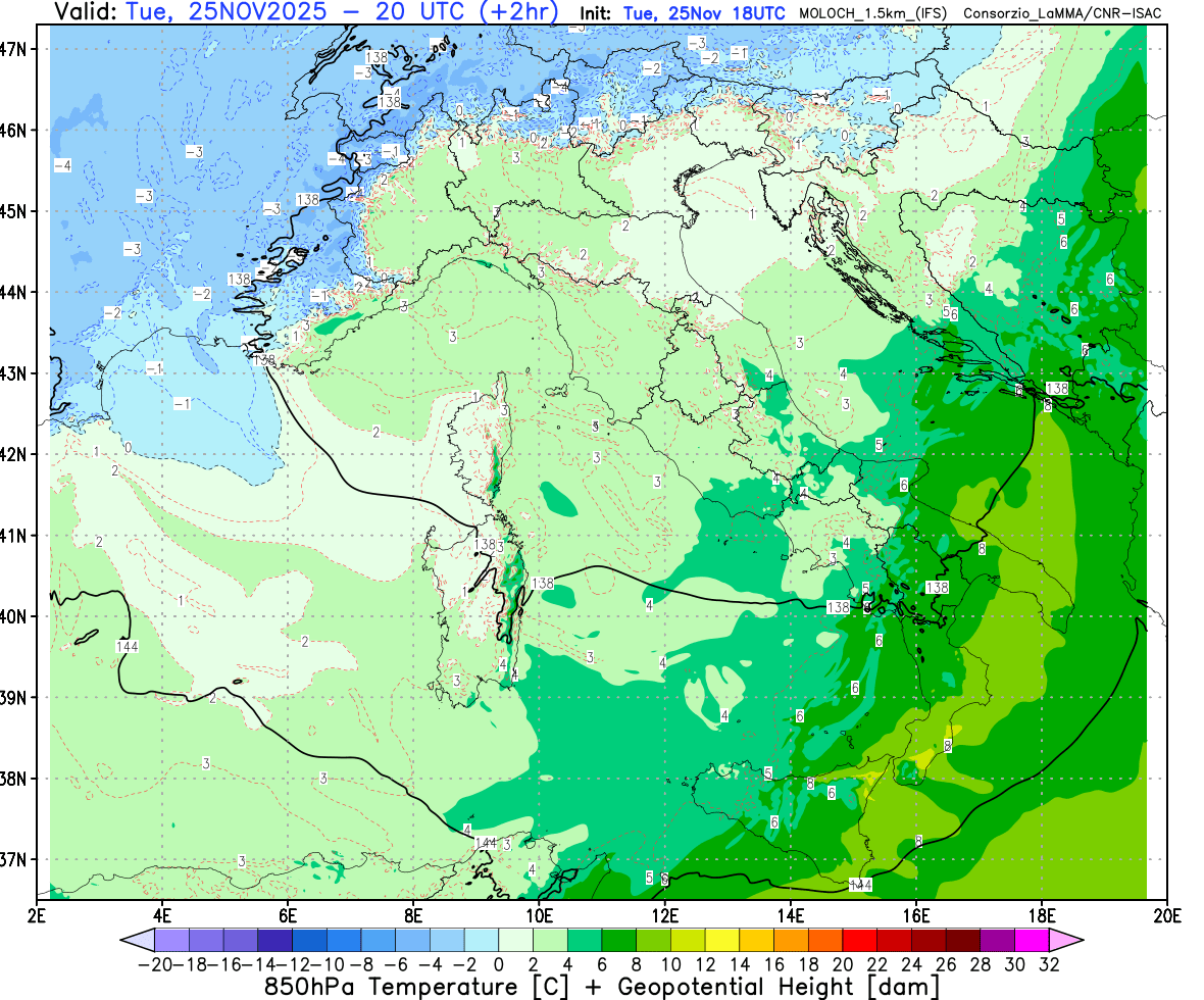 Gradi 8,6 C°, umidità relativa 85%, punto di rugiada 7.30 C° - Data: "Nov 25 2025 2:00 AM"