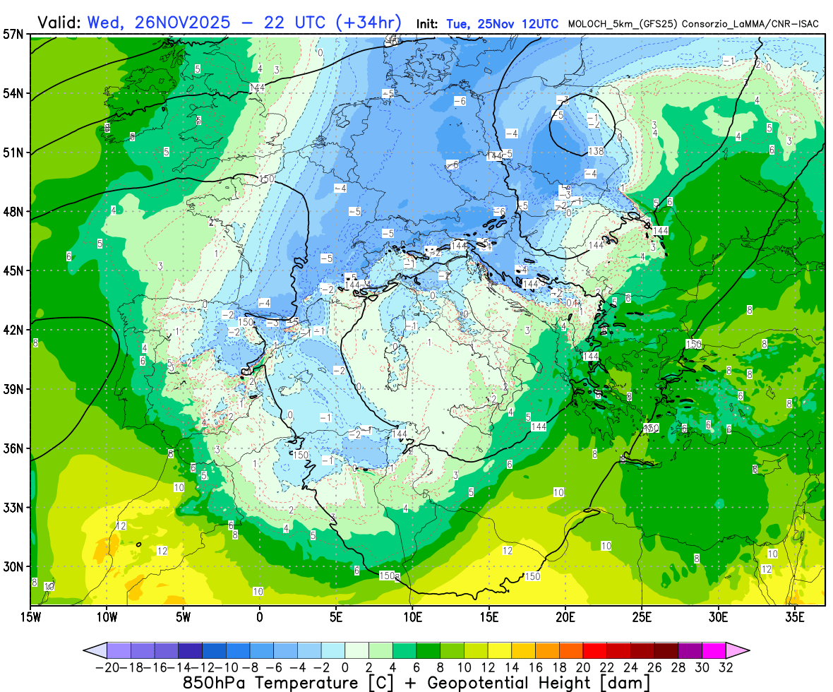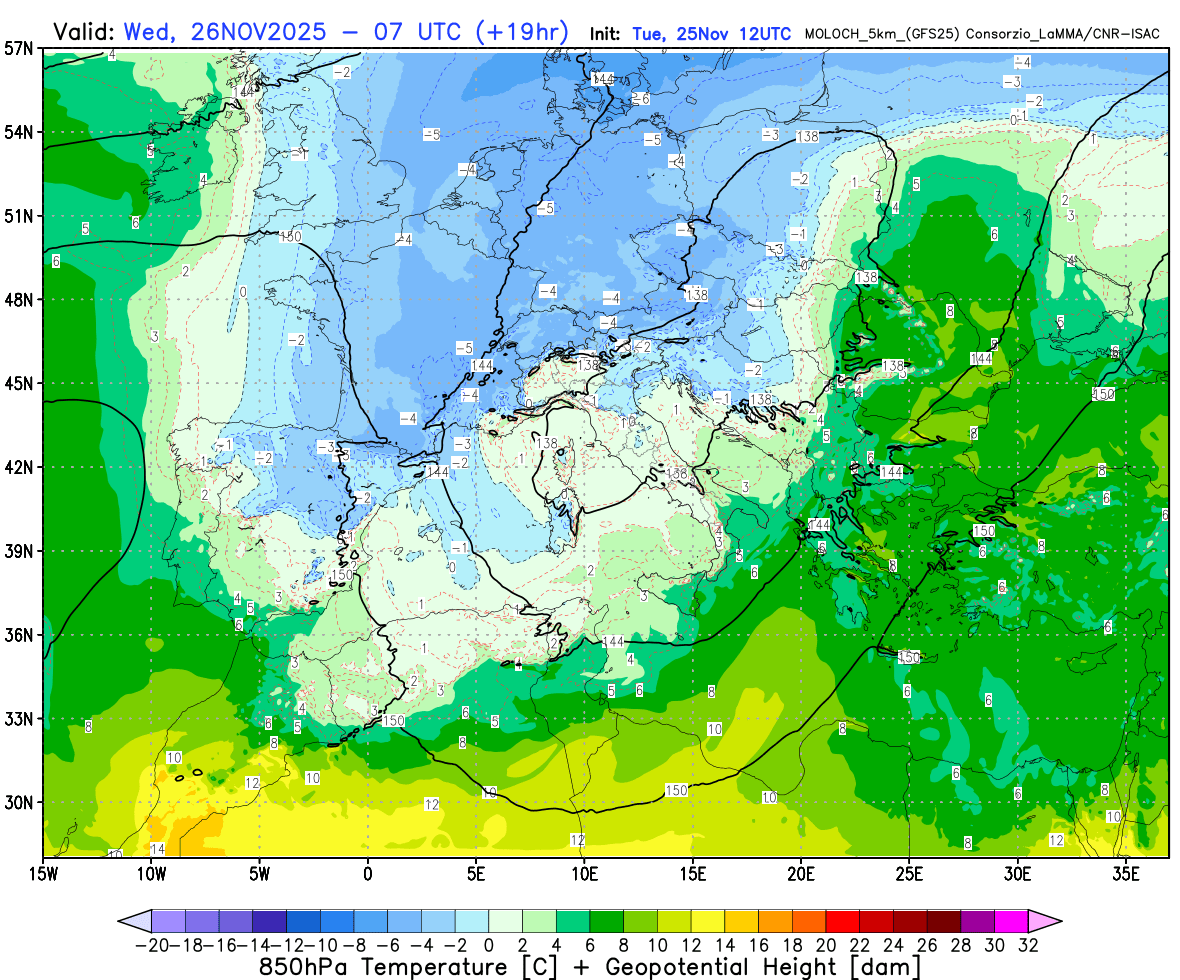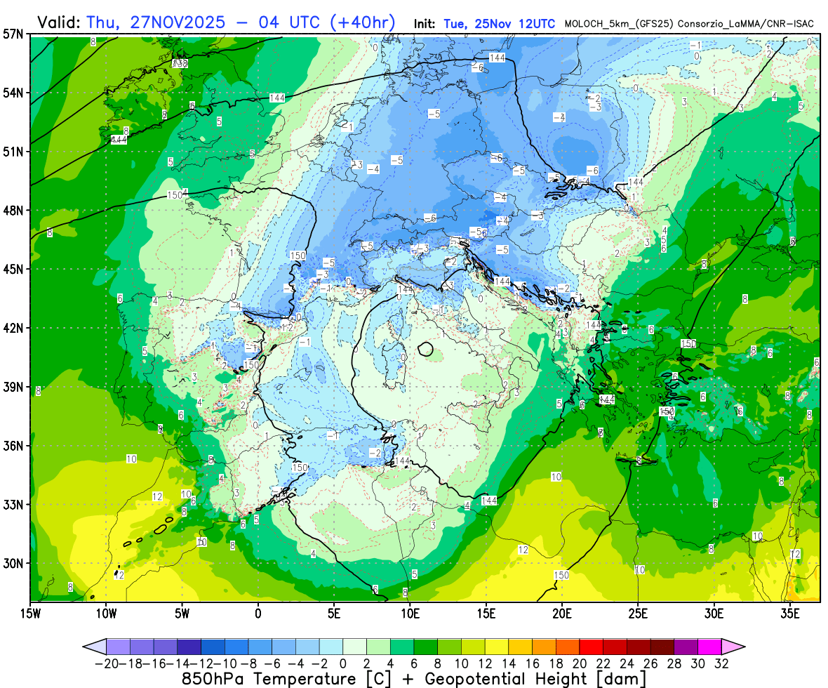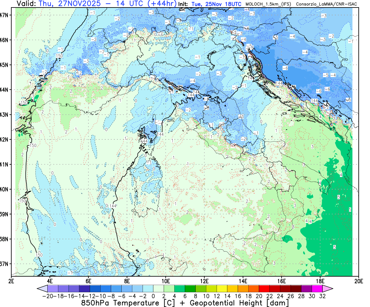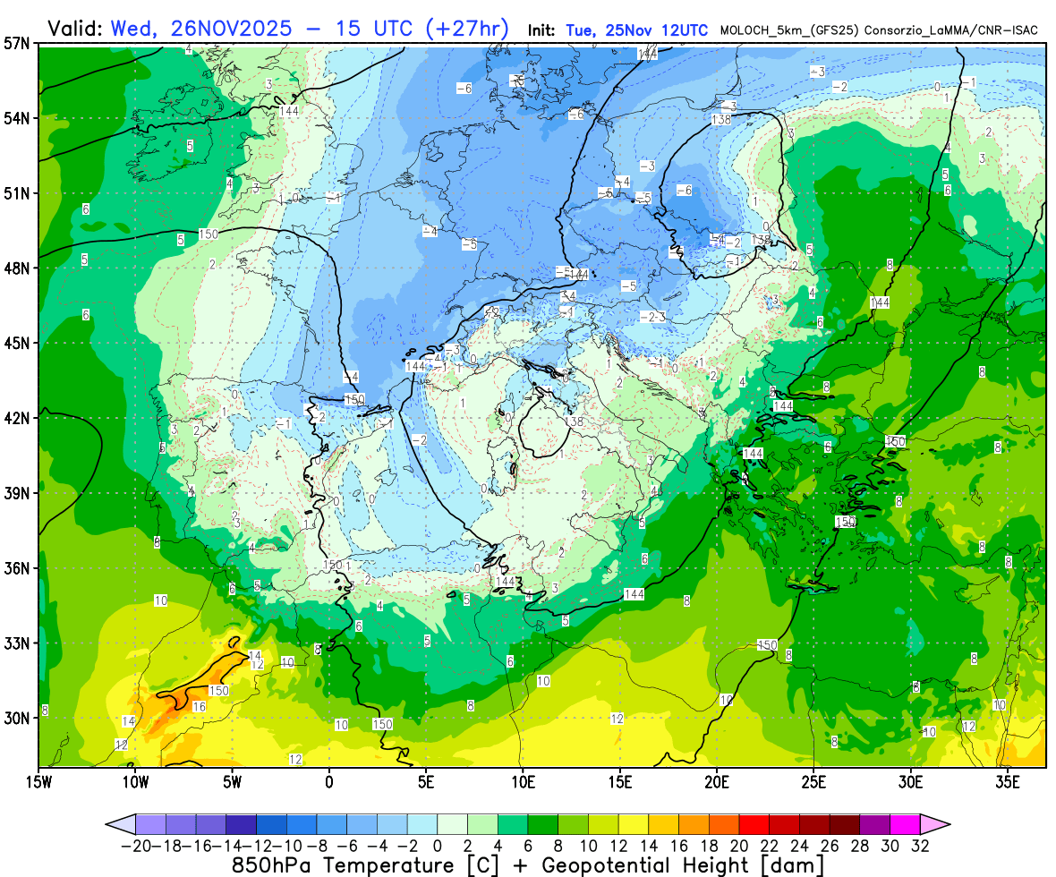 Gradi 8,6 C°, umidità relativa 85%, punto di rugiada 7.30 C° - Data: "Nov 25 2025 2:00 AM"
