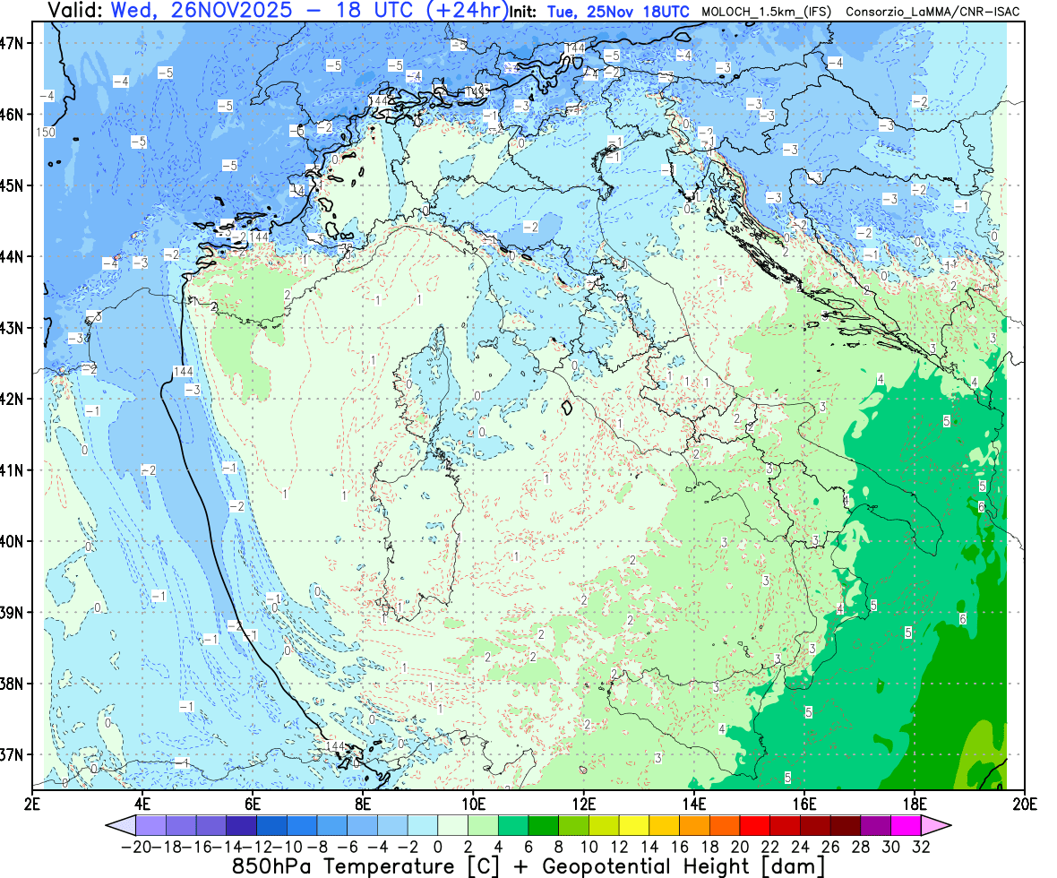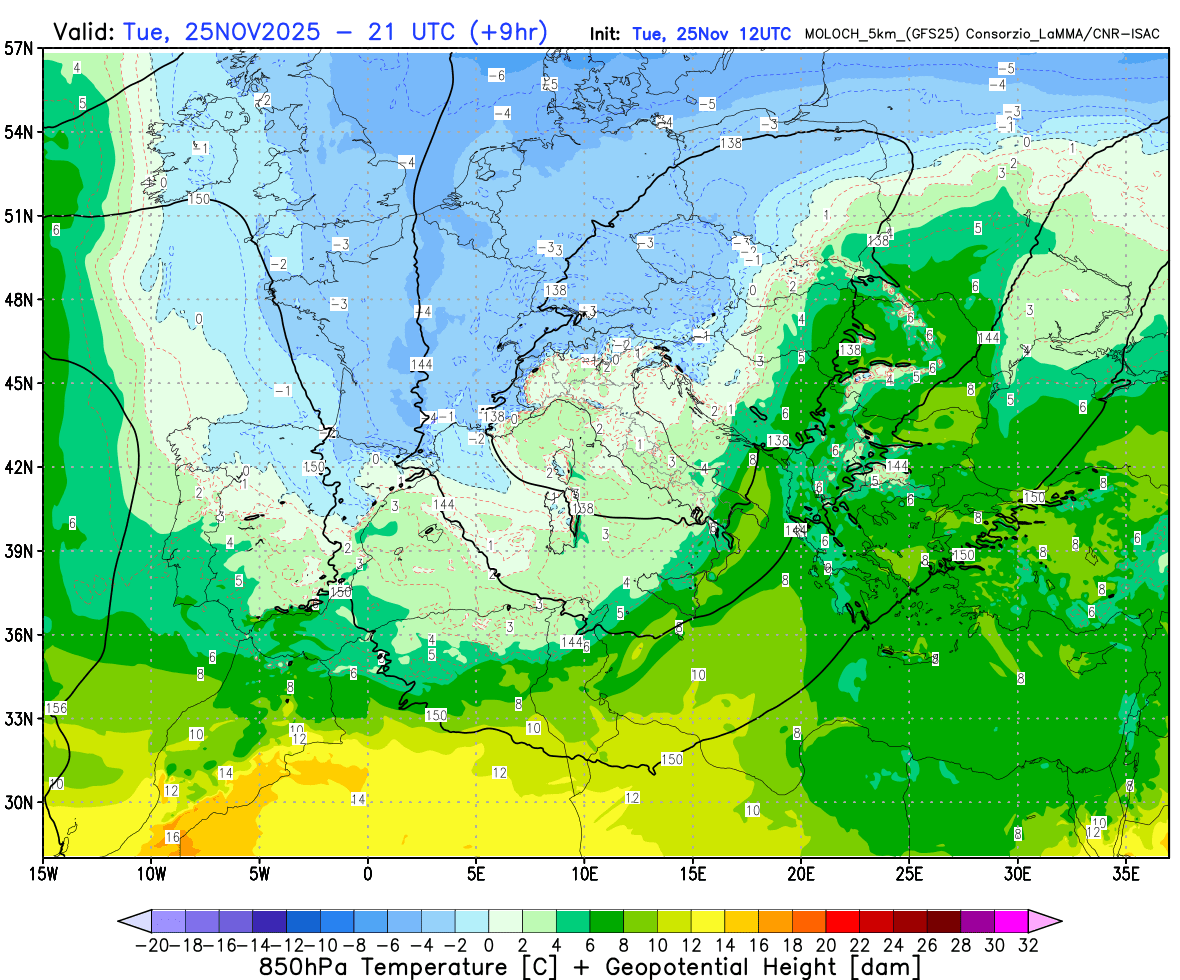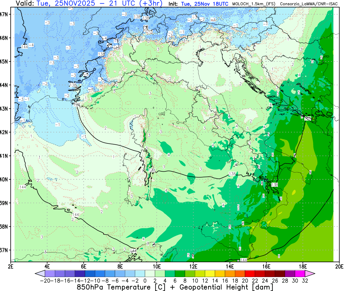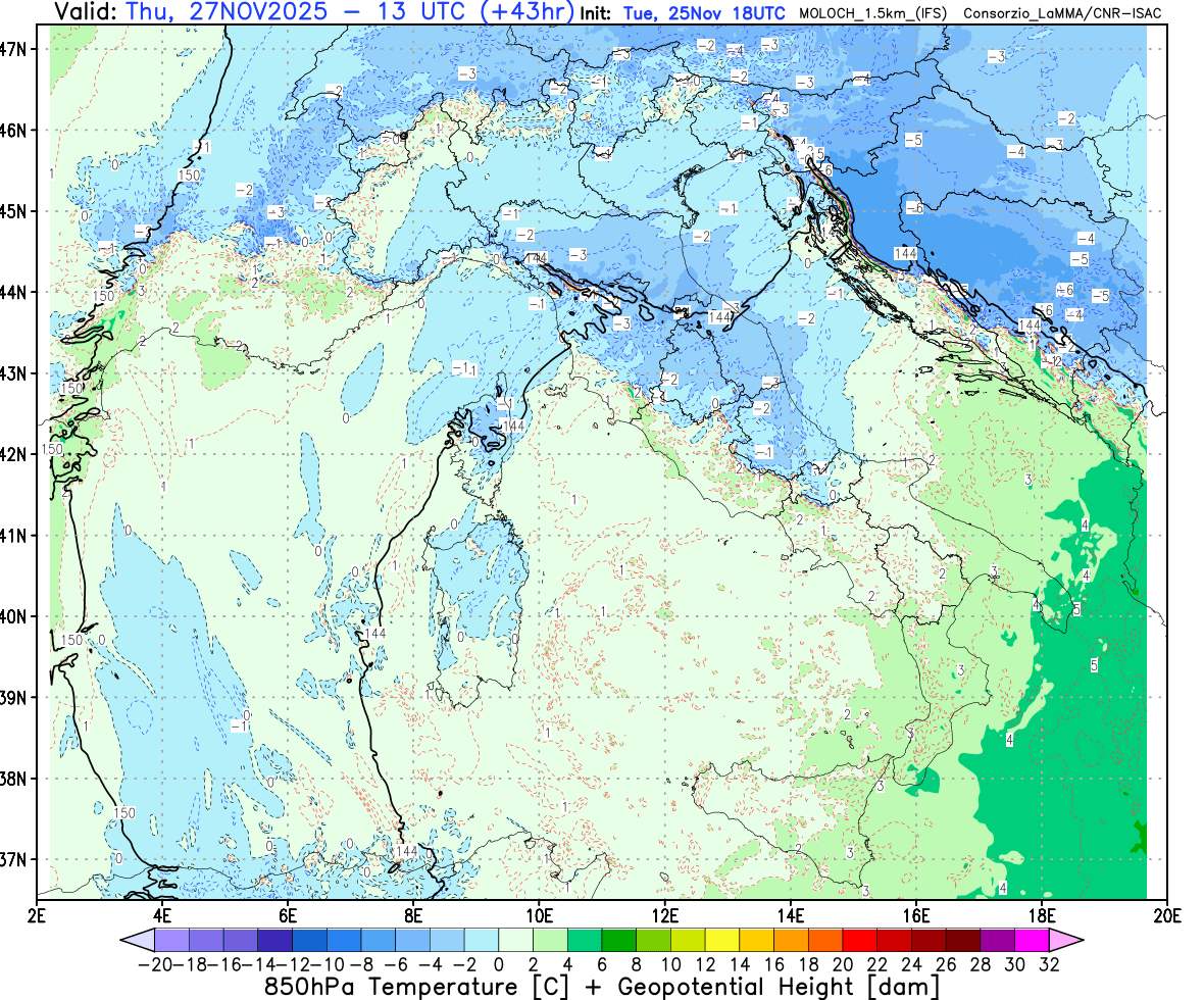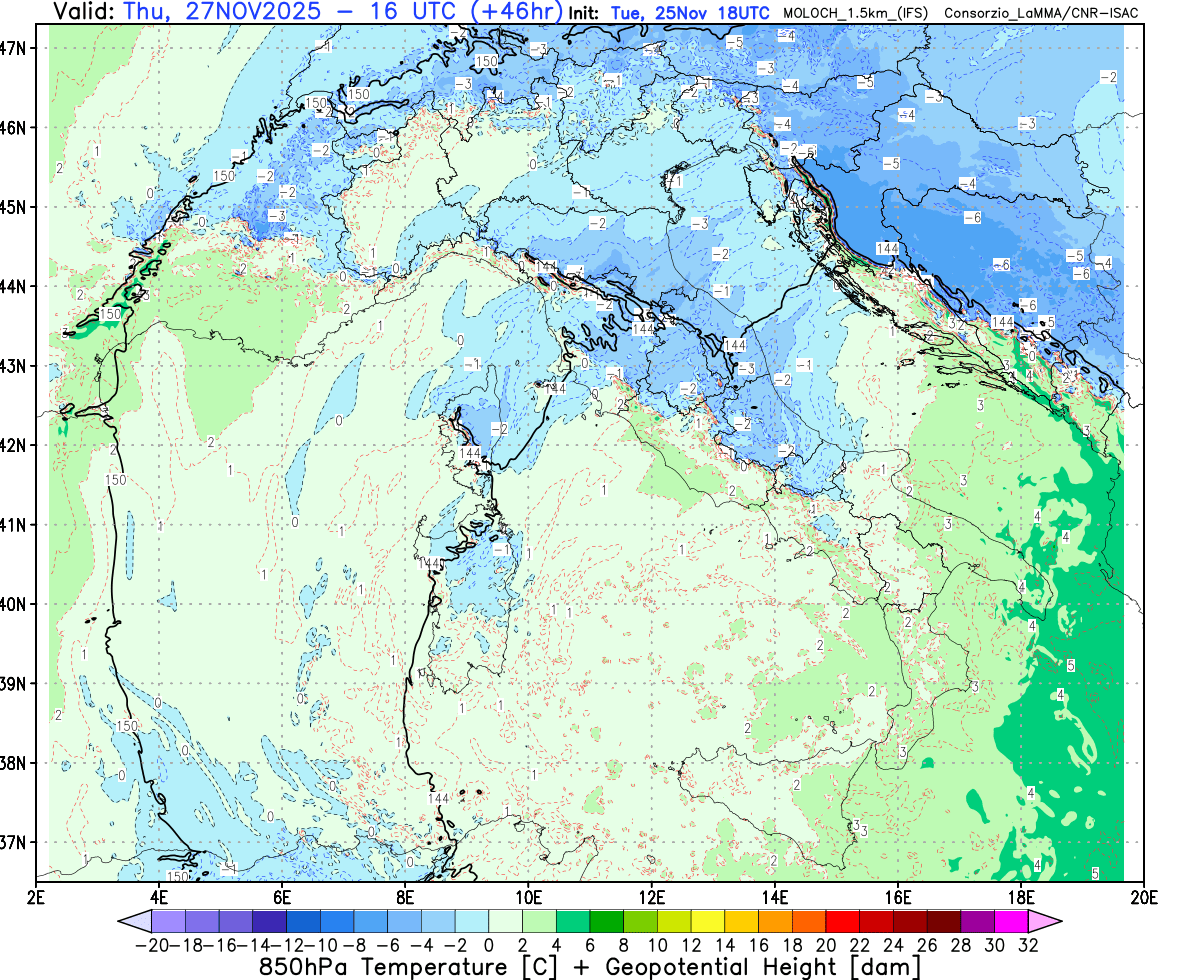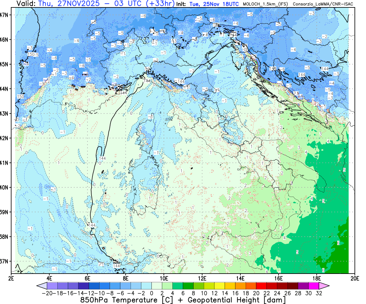 Gradi 8,6 C°, umidità relativa 85%, punto di rugiada 7.30 C° - Data: "Nov 25 2025 2:00 AM"