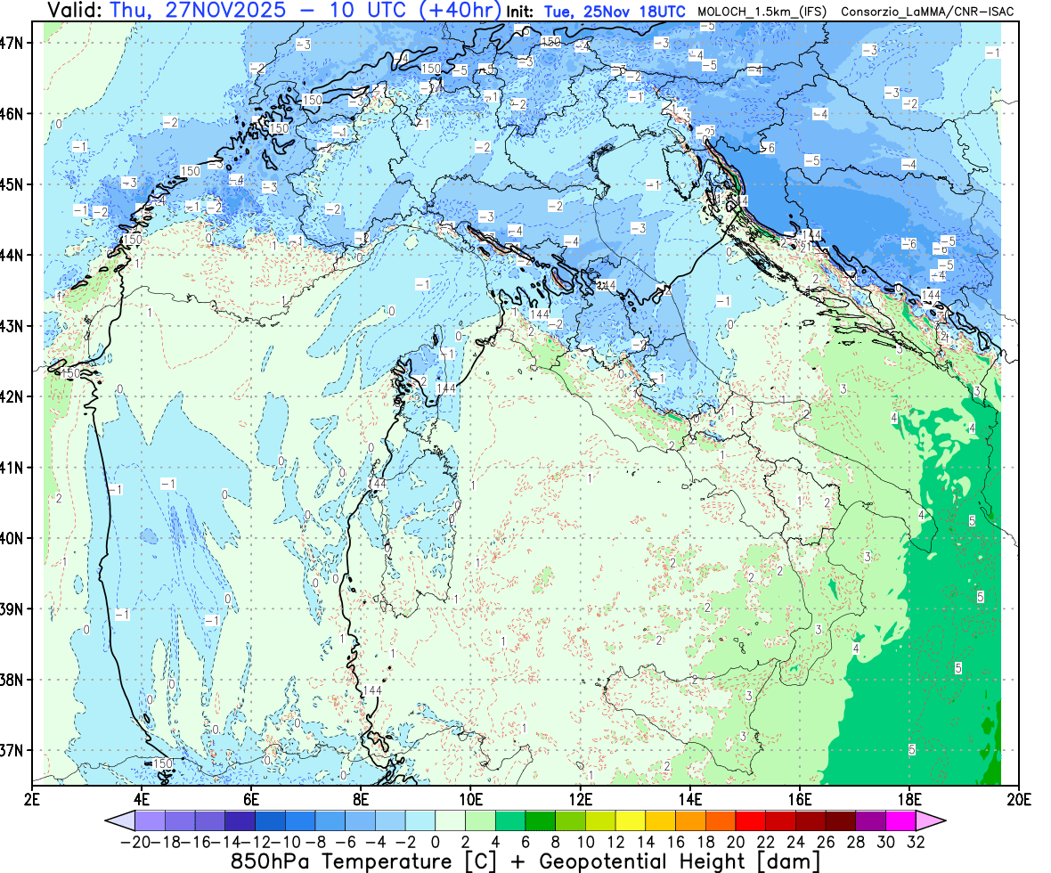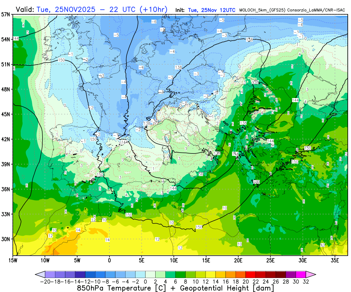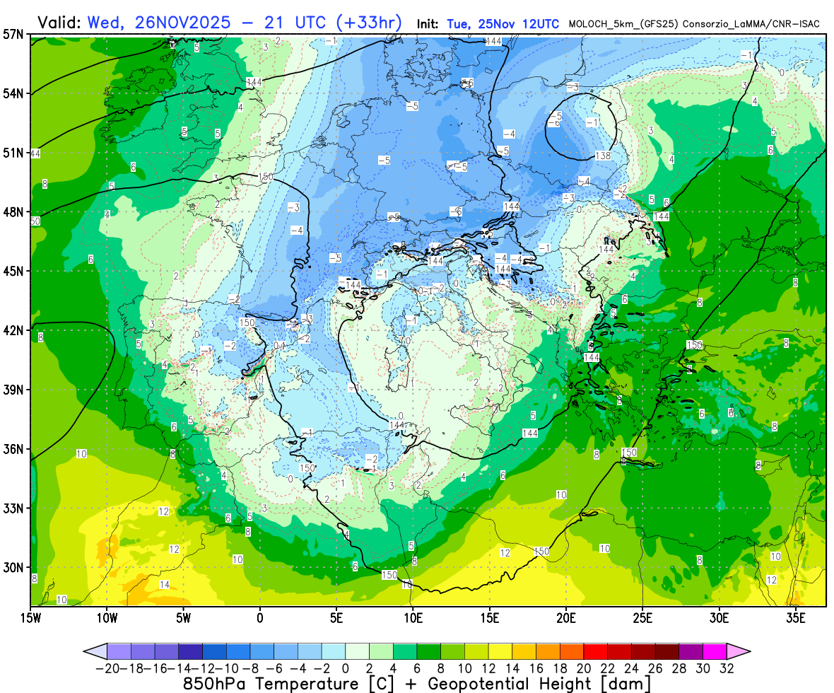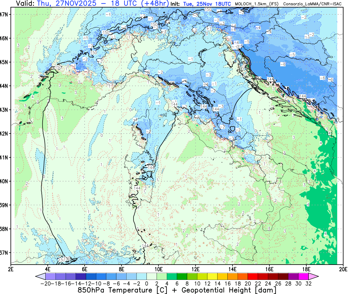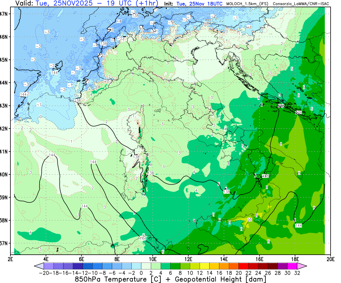 Gradi 8,6 C°, umidità relativa 85%, punto di rugiada 7.30 C° - Data: "Nov 25 2025 2:00 AM"