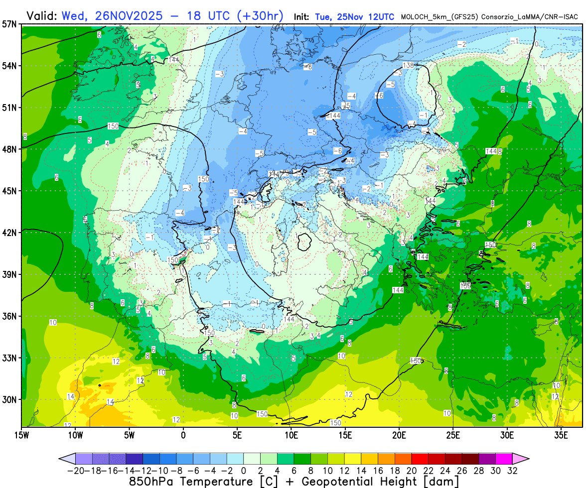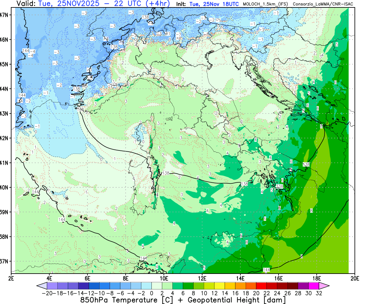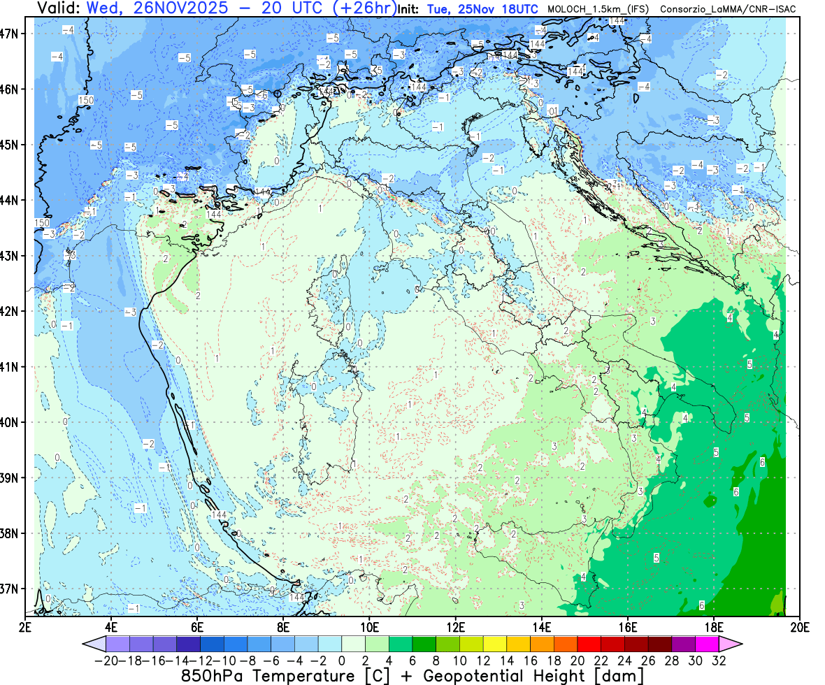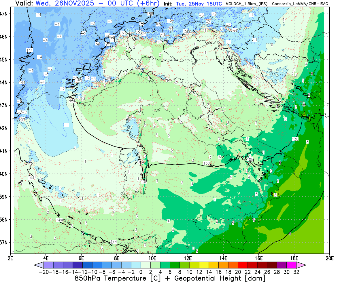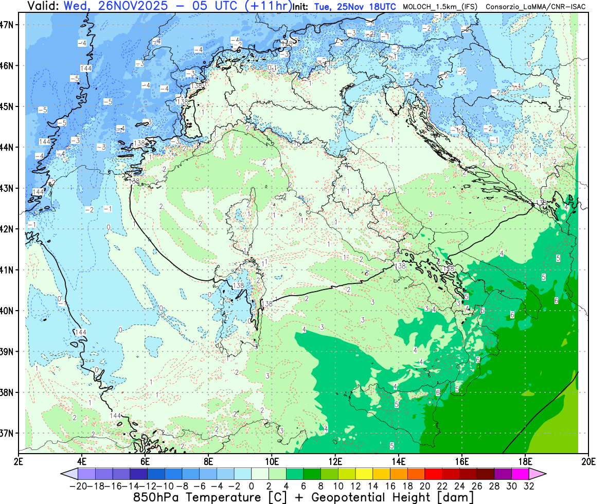 Gradi 8,4 C°, umidità relativa 99%, punto di rugiada 8.40 C° Temperatura massima: 8,4 C° registrata il "Nov 25 2025 9:30 AM" - Temperatura minima: 6 C° registrata il "Nov 25 2025 5:15 AM"- WebCam Abruzzo