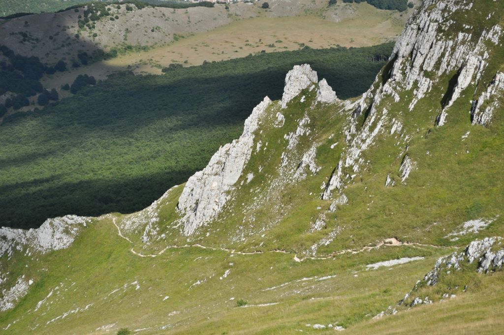Superato il tratto più ripido, il sentiero esce dal canalone e raggiunge la cresta sud-occidentale del Sirente. Da qui il panorama si apre progressivamente verso il Velino, la Maiella, il Gran Sasso e, nelle giornate più limpide, fino all’Adriatico. L’ultimo tratto, pur meno ripido, richiede ancora attenzione per la presenza di pietraie e terreno irregolare.