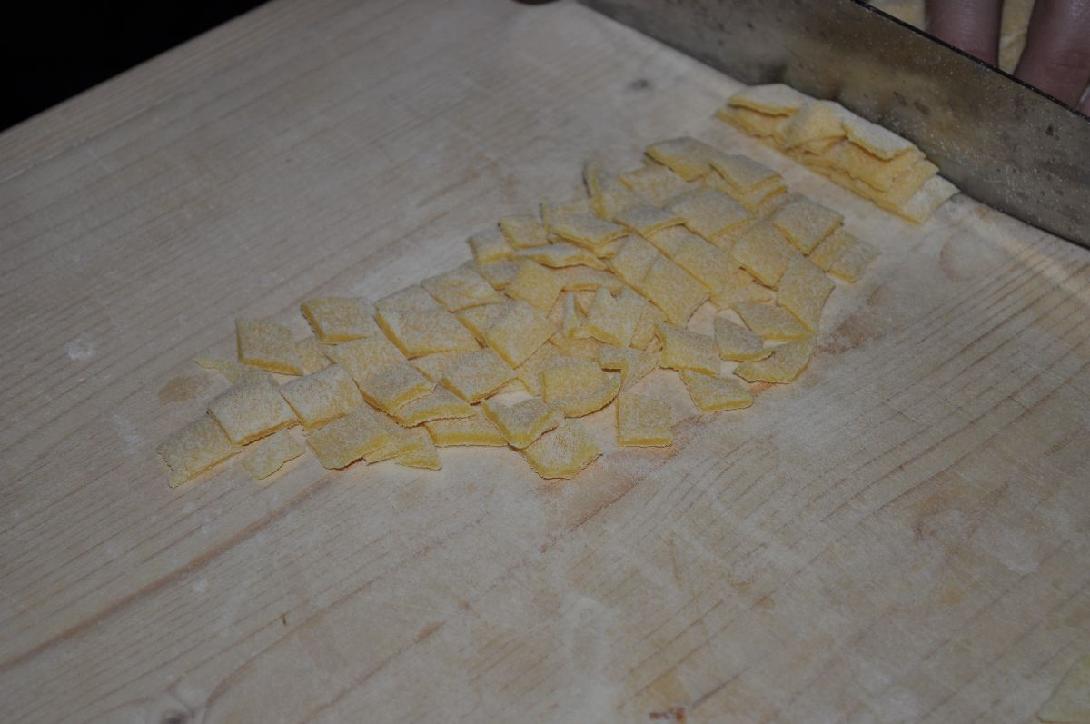 Le volarelle in brodo di carne, con carne mista di vitellone e tacchino oppure gallina