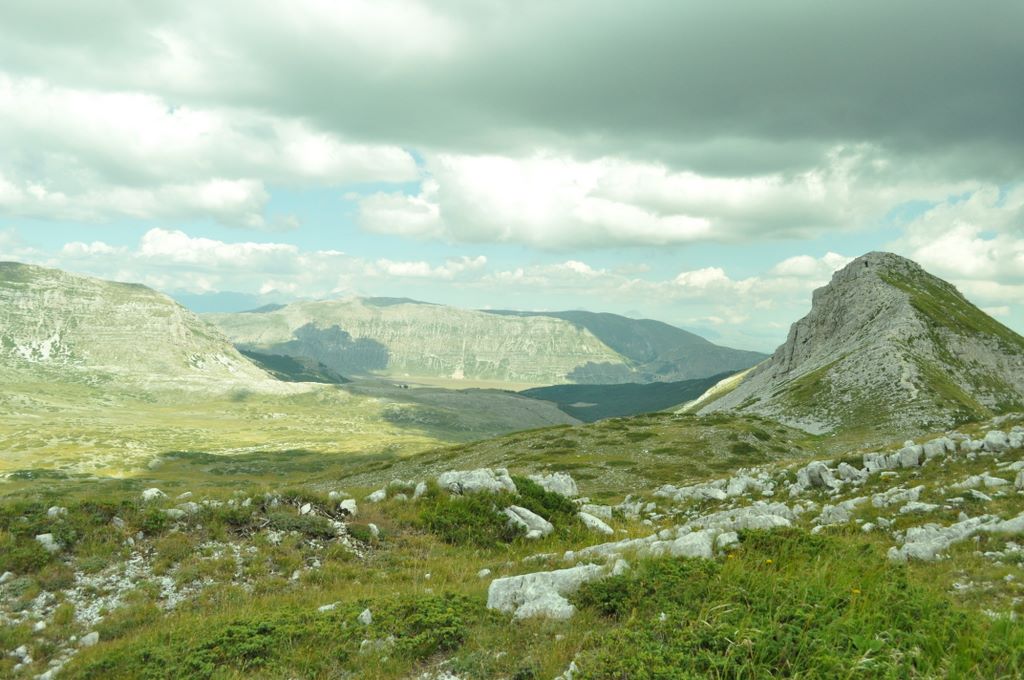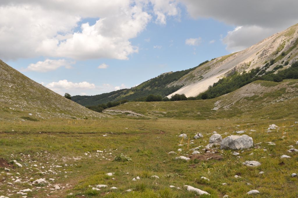 Dal passo si continua verso sud-est, seguendo un traverso su terreno misto (erba e pietraie) che conduce progressivamente verso il crinale dove sorge il Rifugio Sebastiani. Il sentiero è ben tracciato e offre scorci spettacolari sulle valli circostanti.