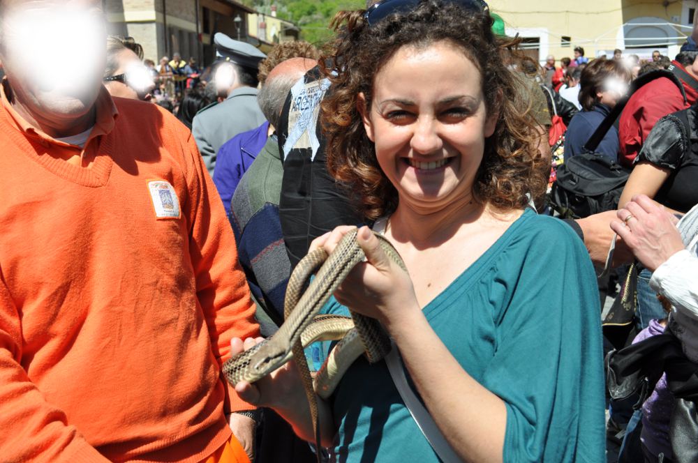 Viaggiando per l'Abruzzo oggi siamo andati a Cocullo. Era già da qualche anno che pensavo di volerci andare il primo giovedì di maggio (poi diventato il 1° maggio), cioè il giorno in cui si festeggia San Domenico di Sora Abate, protettore dei veleni. La festa antichissima si ritiene che nasca in epoca pre-romana e si sia mantenuta negli anni praticamente intatta. Questo antichissimo rito si pensi sia nato come culto pagano in favore della dea Angizia, protettrice dai veleni