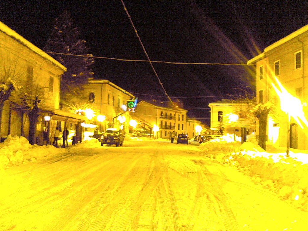Si tratta di un paesino (neanche tanto "ino", a dire il vero) nella valle del Liri, in provincia di L'Aquila. Già il viaggio è piacevole; dopo un tratto di autostrada, ci avventuriamo per una strada di montagna. Il paesaggio è molto bello e lo diventa ancora di più continuando a salire, quando ci troviamo praticamente avvolti da una bufera di neve