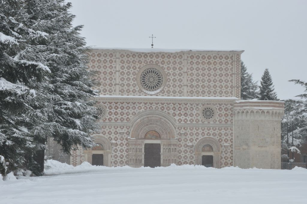 The Basilica of Santa Maria di Collemaggio, resting place of Pope Celestine V, the only pope buried outside Rome’s walls