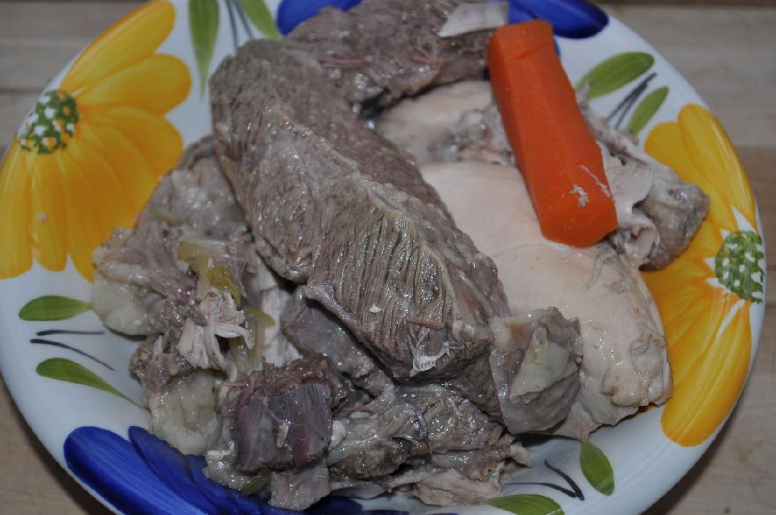 Le volarelle in brodo di carne, con carne mista di vitellone e tacchino oppure gallina