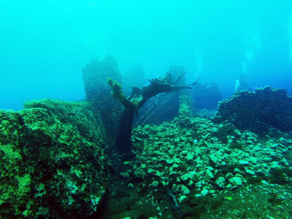 The Capodacqua reservoir, with submerged mills and crystal-clear waters, a paradise for divers