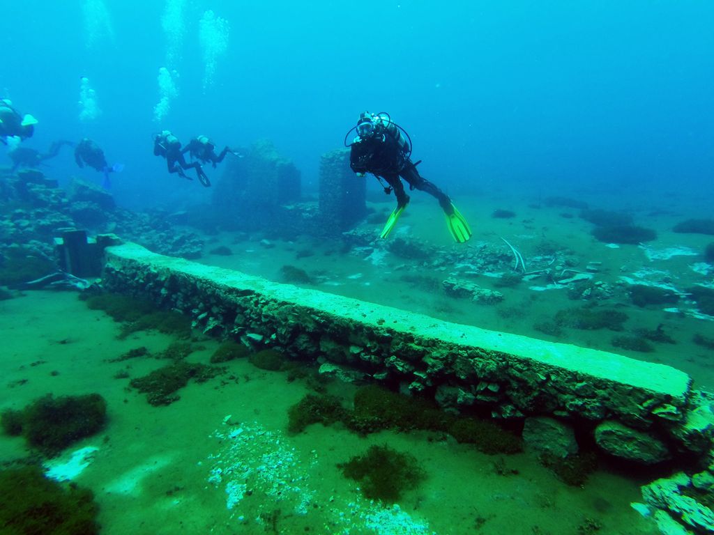 The Capodacqua reservoir, with submerged mills and crystal-clear waters, a paradise for divers