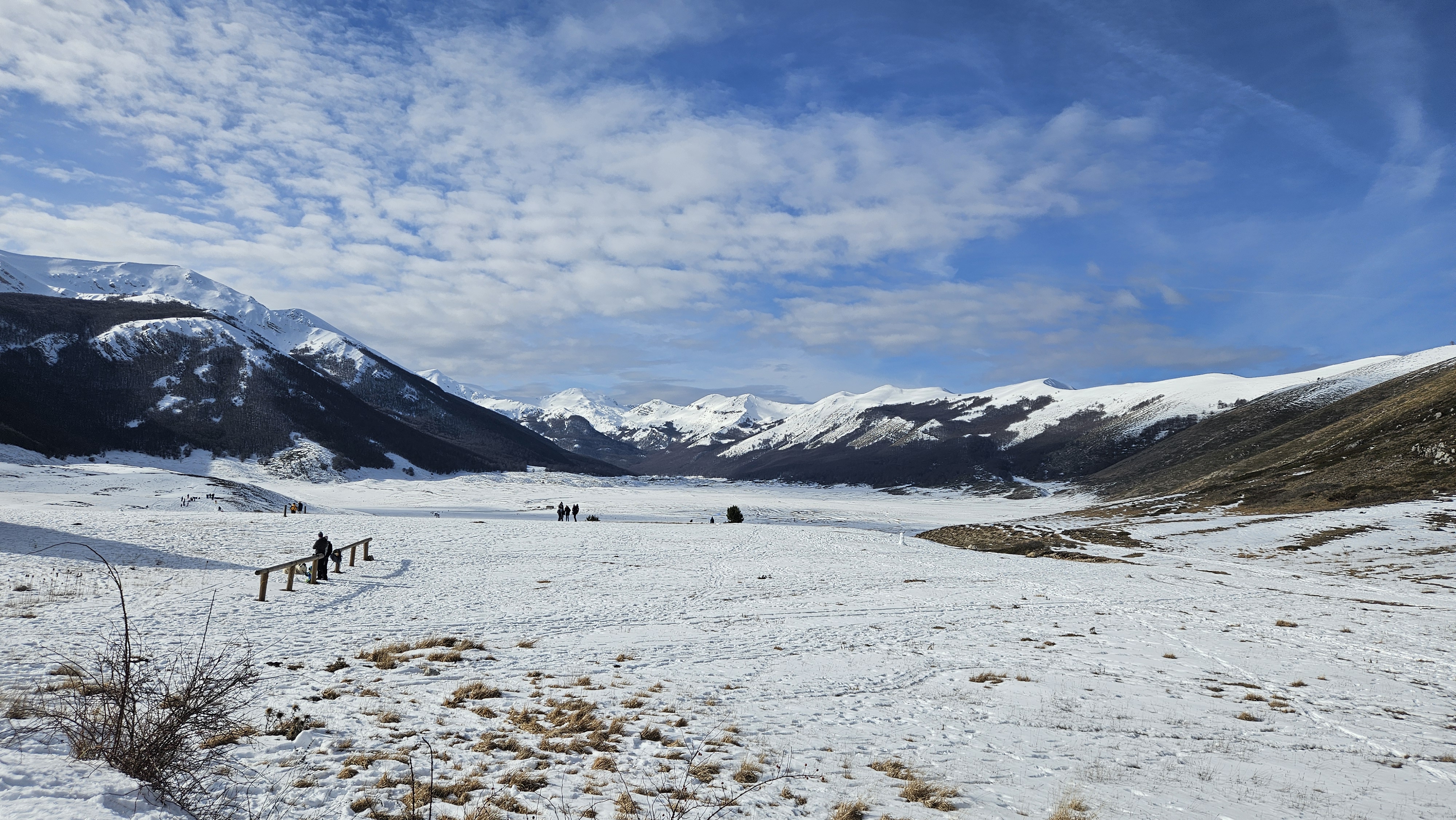 Altopiano glaciale nel Parco Sirente‑Velino, ideale per trekking, sci di fondo, ciaspolate e natura incontaminata. Accesso da Rovere, vicino a Rocca di Mezzo