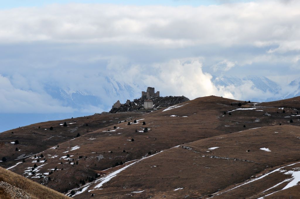 Die Dörfer Campo Imperatore, Castel del Monte (1346 m), Santo Stefano di Sessanio (1251 m), Rocca Calascio (1210 m) und Barisciano: mittelalterliche Burgen inmitten der Natur des Nationalparks Gran Sasso und Monti della Laga