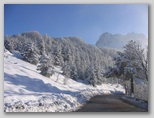 Auf dem Weg nach Pietracamela entdecken wir dann (oder besser gesagt *ich* entdecke… ich glaube, mein Mann kannte die Geheimnisse der Gegend bereits), dass wir eigentlich nach „Prati di Tivo – Ortsteil von Pietracamela“ fahren. Ein Dorf hier? Mitten im Gebirge? Ja, tatsächlich. Und nicht irgendein Dorf, sondern ein echtes Bergdorf wie aus einem Heidi‑Buch. Es zieht sich den Hang hinauf, umgeben von Bergen und Wäldern; die Häuser stehen dicht beieinander, alle aus Stein, mit kleinen Holzfenstern, aus denen ein paar tapfere Pflänzchen hervorschauen, die den Winter überlebt haben. Die Straßen sind nichts weiter als schmale Anstiege (oft Treppen), auf denen kaum zwei Personen nebeneinander gehen können und daher… Wunder über Wunder… keine Autos, keine Motorroller, nicht einmal Fahrräder. Um uns herum nur Natur, Stille, Frieden und eine atemberaubende Landschaft. Wir steigen bis zum oberen Ende des Dorfes hinauf und entdecken, dass der Weg (inzwischen ein richtiger Pfad) weiter in den Wald und den Berg hineinführt. Wir vermuten, dass er zu unserem ersten Ziel (Pietracamela) führt, aber es ist Winter und wir kennen die Gegend nicht, also entscheiden wir uns klugerweise dagegen, weiterzugehen, und kehren zum Auto zurück, um unser Ziel auf sicherere – wenn auch weniger stimmungsvolle – Weise zu erreichen. Wir nehmen uns jedoch fest vor, im Sommer zurückzukehren und diesen verwunschenen Pfad zu erkunden.