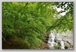 Uscendo gradualmente dal bosco, si entra nel cuore della Valle delle Cento Cascate. Qui il Fosso dell’Acero scorre su grandi lastroni di arenaria, formando una sequenza quasi continua di salti d’acqua, scivoli e cascatelle di varie dimensioni, che rendono il percorso estremamente scenografico e suggestivo.