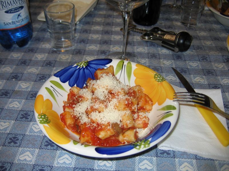 Gnocchi al sugo di castrato. Una specialità tipica abruzzese per il tipo di condimento utilizzato, cioè gnocchi fatti in casa con le classiche patate e il sugo a base di carne ovina cotto per circa due ore e formaggio pecorino. Per chi non ama il pecorino, consigliato il parmiggiano