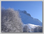Quindi, diretti ai Prati di Tivo, scopriamo (meglio dire scopro.... credo che mio marito compagno di viaggio conoscesse già i segreti della zona) che per la precisione stiamo andando a "Prati di Tivo - Contrada di Pietra Camela". Un paese qui? Proprio nel mezzo della montagna? Ebbene si. E non un paese qualsiasi, ma il paese di Heidi! E' il vero e proprio paese di montagna! Si sviluppa in salita, circondato da monti e boschi; le case sono tutte vicine vicine, tutte in pietra, con le finestrelle di legno dalle quali spuntano esitanti delle piantine che hanno resistito ai rigori dell'inverno; le strade non sono altro che delle strette salite (o spesso scalinate) nelle quali passano appena due persone affiancate e dunque.... meraviglia delle meraviglie.... niente macchine, niente motorini, addirittura inagibili alle biciclette. Intorno a noi solo natura, silenzio, pace ed un paesaggio mozzafiato. Saliamo fino alla fine del paese per scoprire che la strada (ormai un vero e proprio sentiero) prosegue inoltrandosi nel bosco e sulla montagna. Supponiamo che porti proprio alla nostra prima meta (i Prati di Tivo) ma è inverno e non conosciamo la zona quindi decidiamo (che saggi!) di non avventurarci su per questa strada mi di tornare alla macchina per arrivare a destinazione in maniera più comoda e sicura (per quanto sicuramente meno suggestiva). Ci ripromettiamo però di tornare qui in estate e di percorrere il sentiero fatato che abbiamo appena lasciato.