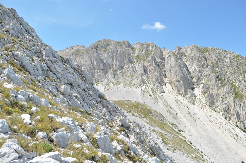 La salita entra nel cuore della Valle Lupara, un ampio canalone caratterizzato da brecciolino instabile, tratti franosi e pendenze molto elevate. È il segmento più faticoso dell’intero percorso, dove è necessario un passo sicuro e un buon allenamento. L’ambiente è severo e suggestivo, con pareti rocciose che incorniciano la valle.