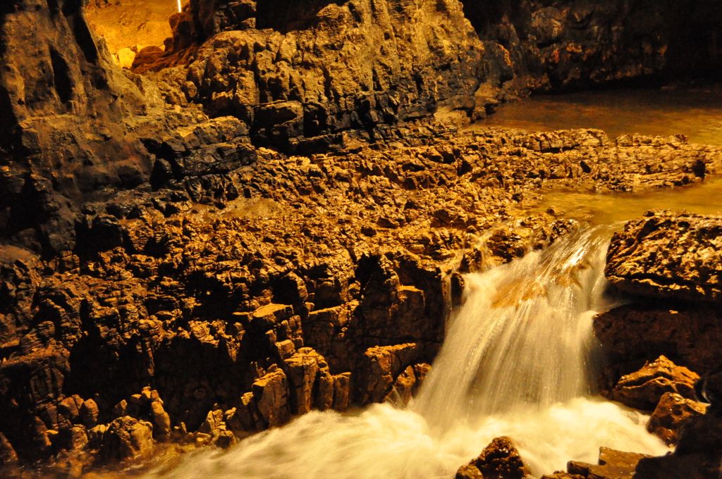 A diferencia de muchas cuevas “fósiles”, aquí el arroyo sigue fluyendo con fuerza: cascadas, rápidos y pozas acompañan la visita. El sonido del agua aumenta a medida que se avanza, alcanzando su punto máximo en la gran cascada final, que puede superar los 20 metros de caída en periodos de crecida.