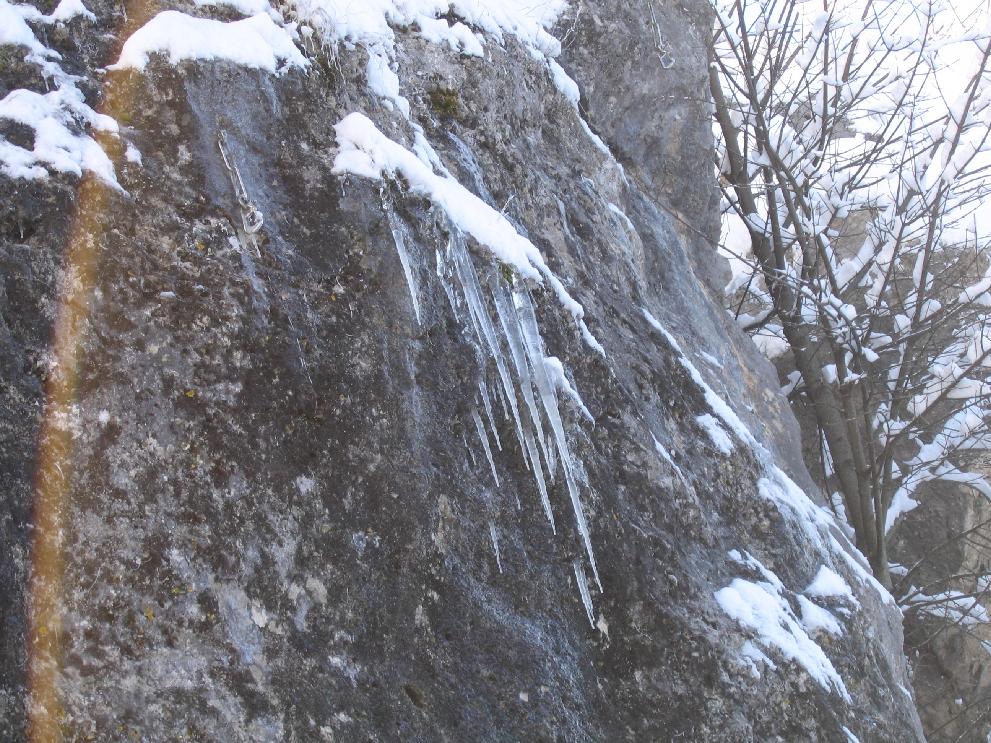 Quindi, diretti ai Prati di Tivo, scopriamo (meglio dire scopro.... credo che mio marito compagno di viaggio conoscesse già i segreti della zona) che per la precisione stiamo andando a "Prati di Tivo - Contrada di Pietra Camela". Un paese qui? Proprio nel mezzo della montagna? Ebbene si. E non un paese qualsiasi, ma il paese di Heidi! E' il vero e proprio paese di montagna! Si sviluppa in salita, circondato da monti e boschi; le case sono tutte vicine vicine, tutte in pietra, con le finestrelle di legno dalle quali spuntano esitanti delle piantine che hanno resistito ai rigori dell'inverno; le strade non sono altro che delle strette salite (o spesso scalinate) nelle quali passano appena due persone affiancate e dunque.... meraviglia delle meraviglie.... niente macchine, niente motorini, addirittura inagibili alle biciclette. Intorno a noi solo natura, silenzio, pace ed un paesaggio mozzafiato. Saliamo fino alla fine del paese per scoprire che la strada (ormai un vero e proprio sentiero) prosegue inoltrandosi nel bosco e sulla montagna. Supponiamo che porti proprio alla nostra prima meta (i Prati di Tivo) ma è inverno e non conosciamo la zona quindi decidiamo (che saggi!) di non avventurarci su per questa strada mi di tornare alla macchina per arrivare a destinazione in maniera più comoda e sicura (per quanto sicuramente meno suggestiva). Ci ripromettiamo però di tornare qui in estate e di percorrere il sentiero fatato che abbiamo appena lasciato.