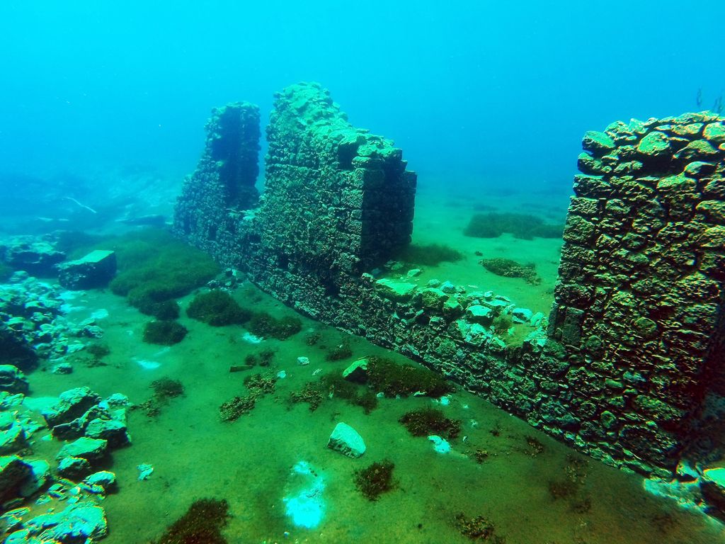 The Capodacqua reservoir, with submerged mills and crystal-clear waters, a paradise for divers